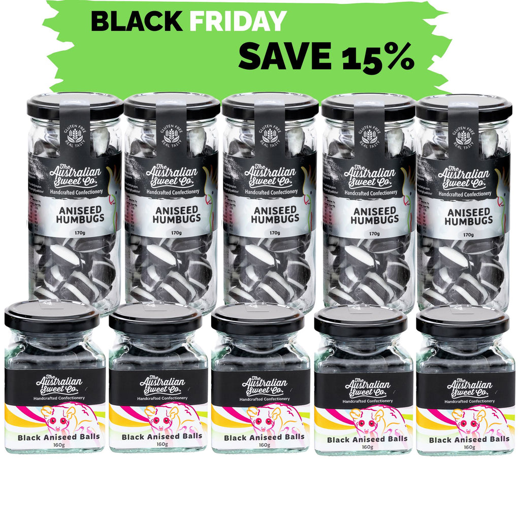 Two legendary sweets. Ten jars. Endless joy. Bold, punchy aniseed flavour just like you remember — the kind your grandparents kept hidden because it was too good to share.