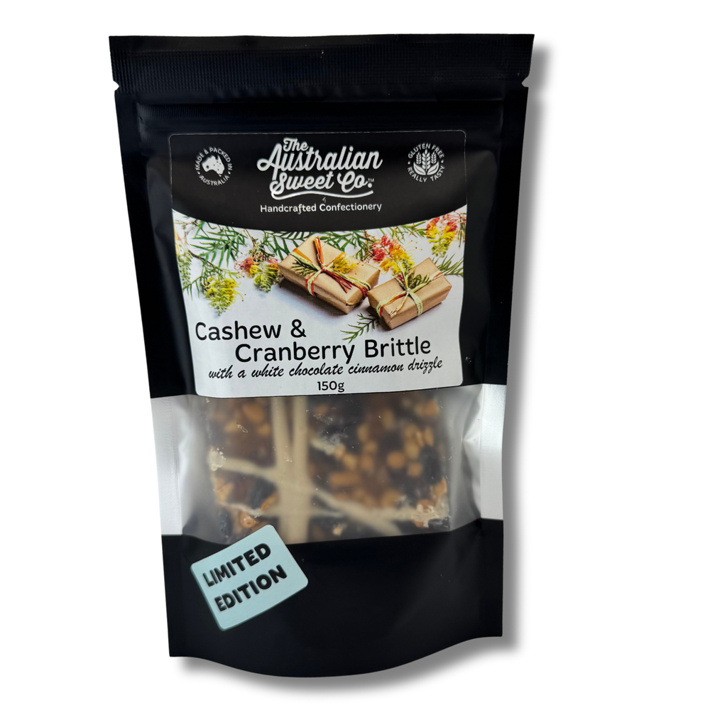 Add a touch of Christmas sparkle to your day with our Limited Edition Christmas Brittle. Handmade with buttery cashews, tangy cranberries, creamy white chocolate drizzle and a sprinkle of cinnamon sugar β itβs the perfect mix of sweet, spiced and festive cheer in every golden crunch.